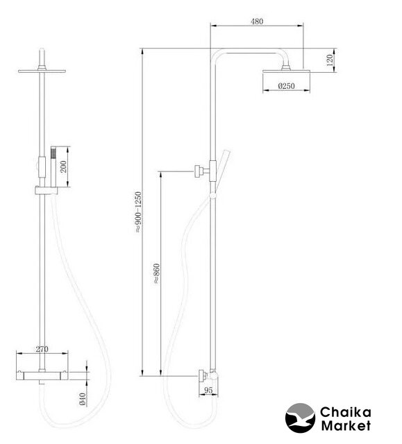 | Диаметр (ширина) верхнего душа | 250 мм |