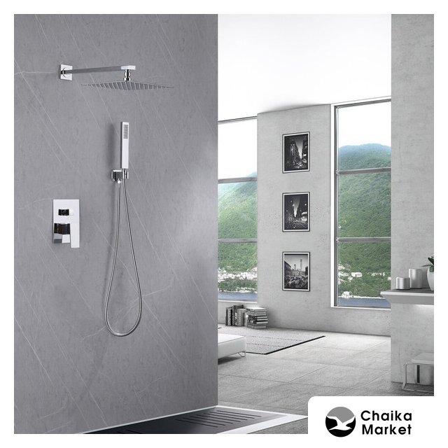 душевая система (с верхним душем), скрытый монтаж, механический смеситель, верхний душ 250 мм, ручной душ 111 мм
