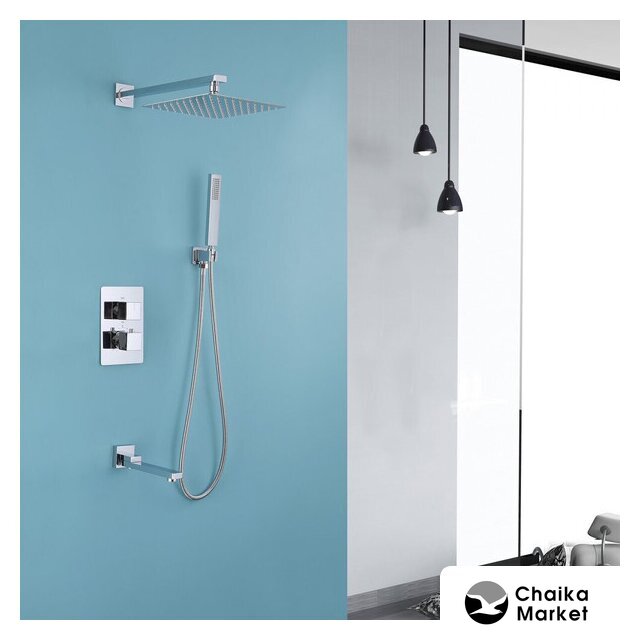 | Комплектация | верхний душ, ручной душ (лейка), держатель лейки, шланг, смеситель, излив для ванны |