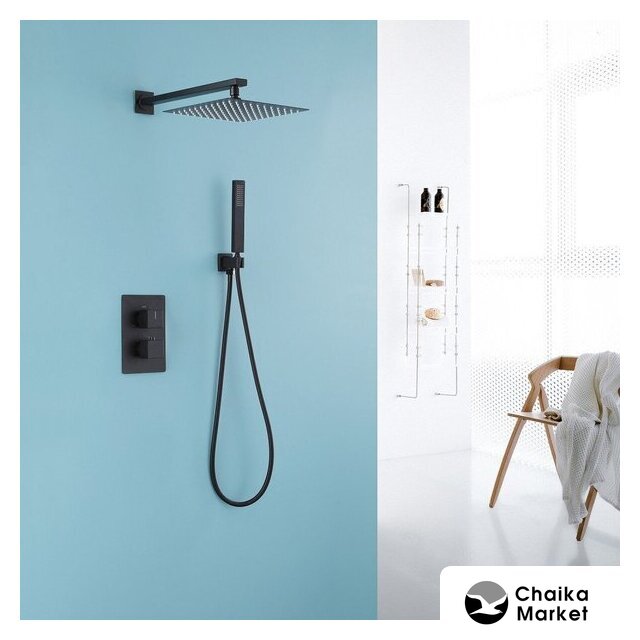 душевая система (с верхним душем), настенный/скрытый монтаж, термостатический смеситель, верхний душ 250 мм, ручной душ 35 мм