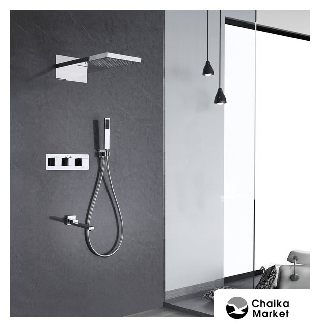 душевая система (с верхним душем), скрытый монтаж, термостатический смеситель, верхний душ 300 мм, ручной душ