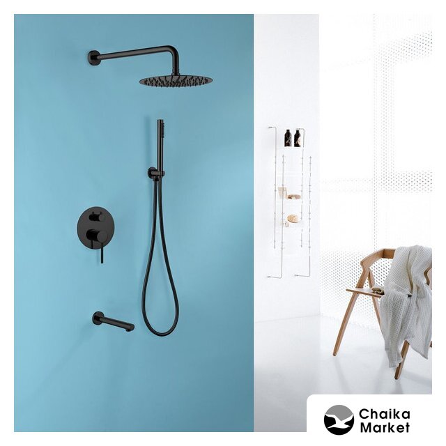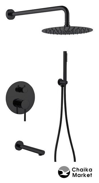 | Комплектация | верхний душ, ручной душ (лейка), держатель лейки, шланг, смеситель, излив для ванны |