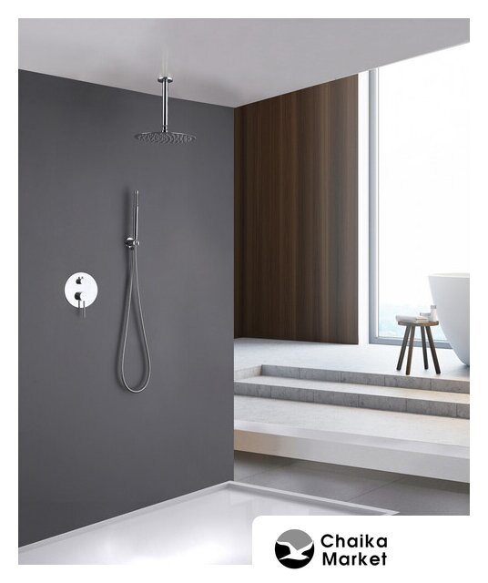 душевая система (с верхним душем), скрытый монтаж, отсутствует смеситель, верхний душ 300 мм, ручной душ 25 мм