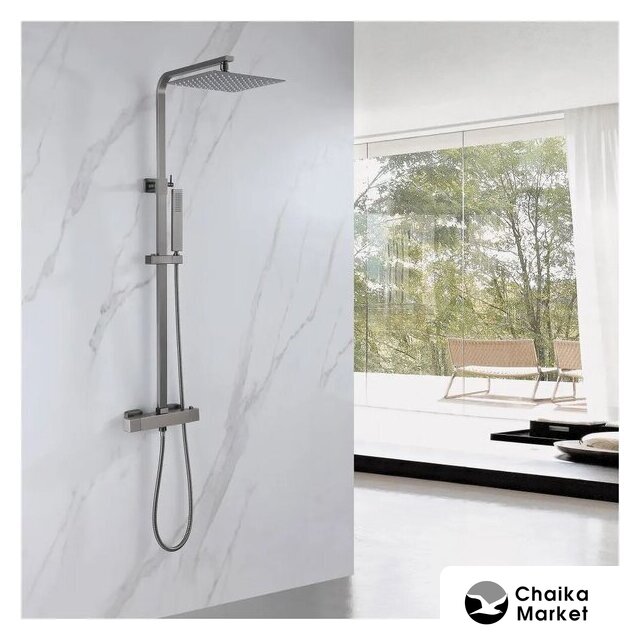 душевая система (с верхним душем), настенный монтаж, термостатический смеситель, верхний душ 230 мм, ручной душ