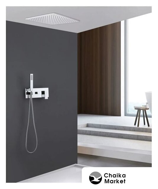 душевая система (с верхним душем), скрытый монтаж, отсутствует смеситель, верхний душ 300 мм, ручной душ 25 мм