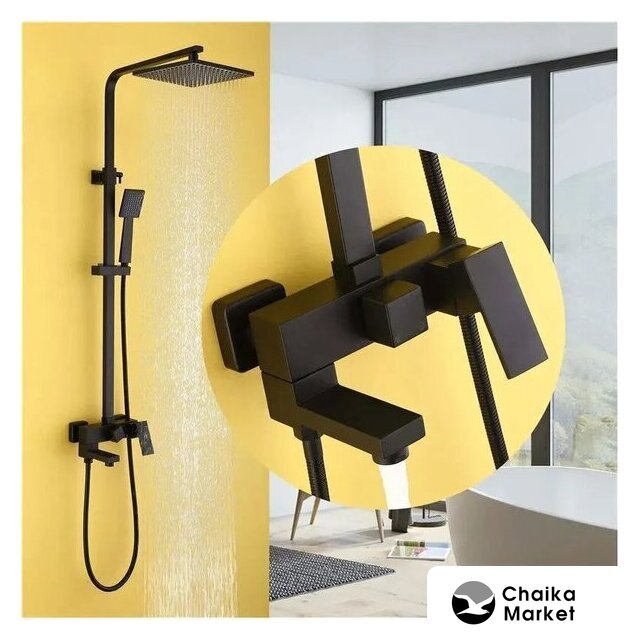 | Комплектация | верхний душ, штанга, ручной душ (лейка), шланг, смеситель |