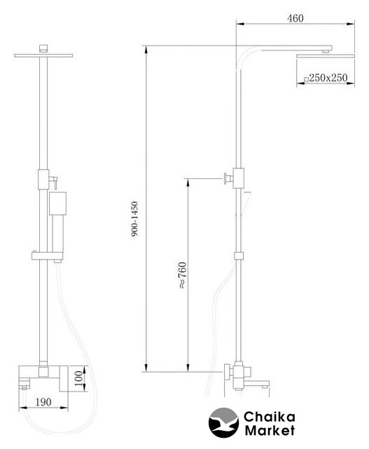 | Диаметр (ширина) верхнего душа | 250 мм |