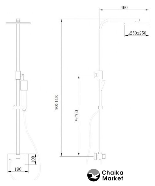 | Диаметр (ширина) верхнего душа | 250 мм |