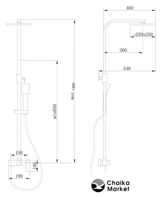 душевая система (с верхним душем), настенный монтаж, механический смеситель, верхний душ 250 мм, ручной душ