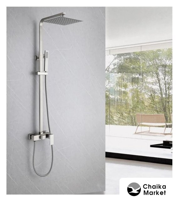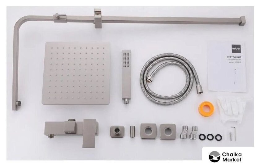| Комплектация | верхний душ, штанга, ручной душ (лейка), держатель лейки, шланг, смеситель |