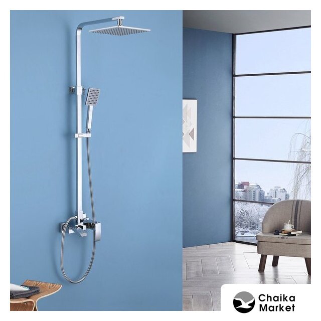 | Комплектация | верхний душ, штанга, ручной душ (лейка), держатель лейки, шланг, смеситель |