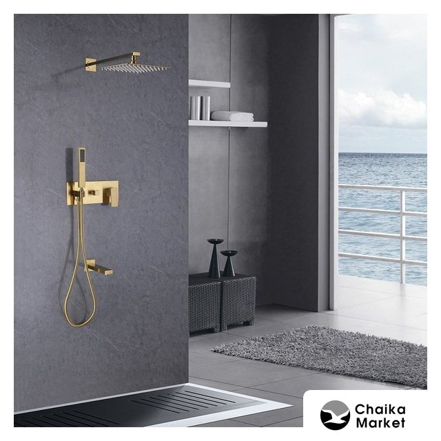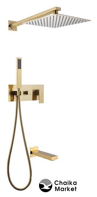 | Комплектация | верхний душ, ручной душ (лейка), держатель лейки, шланг, смеситель, излив для ванны |