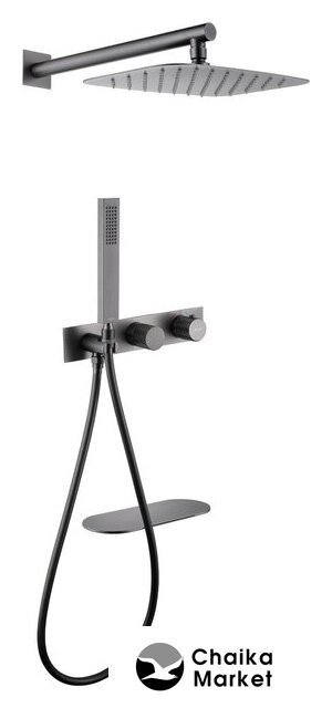 душевая система (с верхним душем), настенный монтаж, термостатический смеситель, верхний душ 230 мм, ручной душ