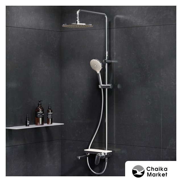 Комплектация | верхний душ, штанга, ручной душ (лейка), держатель лейки, шланг, смеситель |