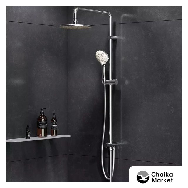 душевая система (с верхним душем), настенный монтаж, механический смеситель, верхний душ 200 мм, ручной душ 90 мм