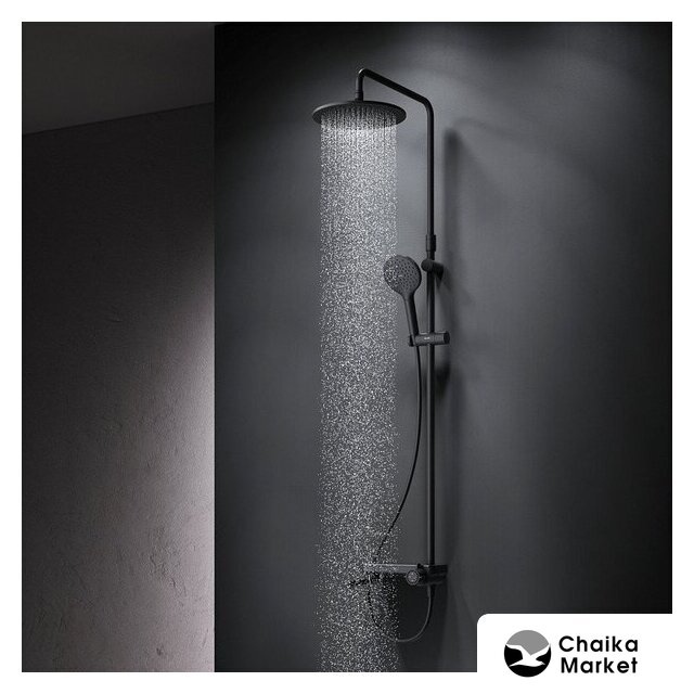 душевая система (с верхним душем), настенный монтаж, термостатический смеситель, верхний душ 300 мм, ручной душ 97 мм