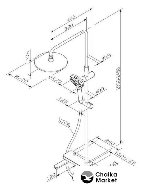 душевая система (с верхним душем), настенный монтаж, механический смеситель, верхний душ 330 мм, ручной душ