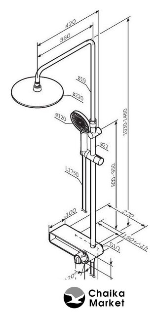 | Диаметр (ширина) верхнего душа | 220 мм |