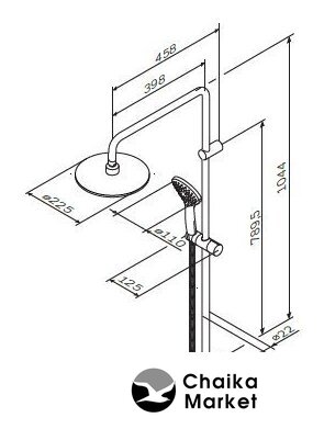 | Диаметр (ширина) верхнего душа | 225 мм |