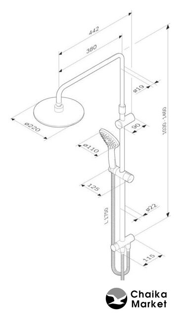 | Вылет верхнего душа | 442 мм |