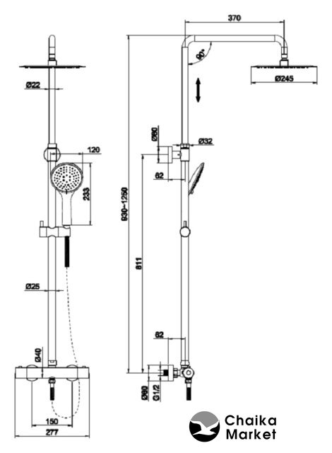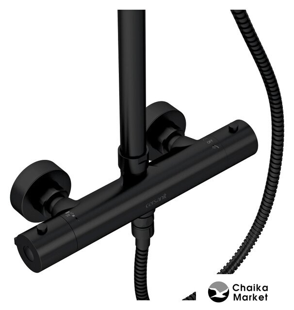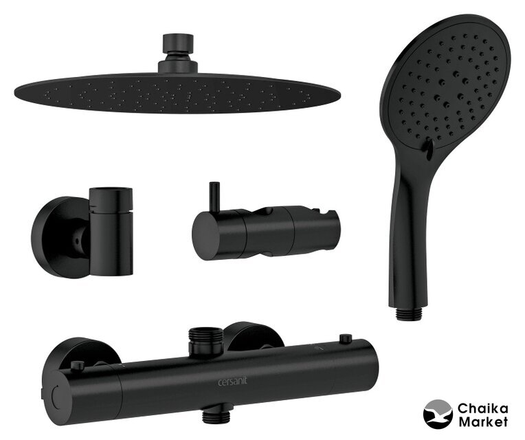 душевая система (с верхним душем), настенный монтаж, термостатический смеситель, верхний душ 300 мм, ручной душ 97 мм