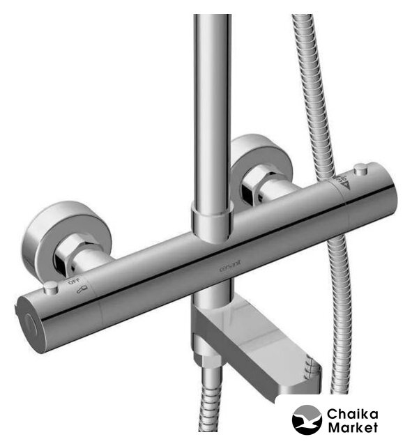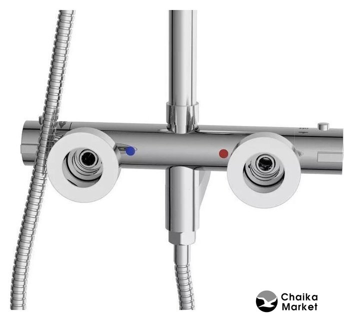 душевая система (с верхним душем), настенный монтаж, термостатический смеситель, верхний душ 225 мм, ручной душ 120 мм