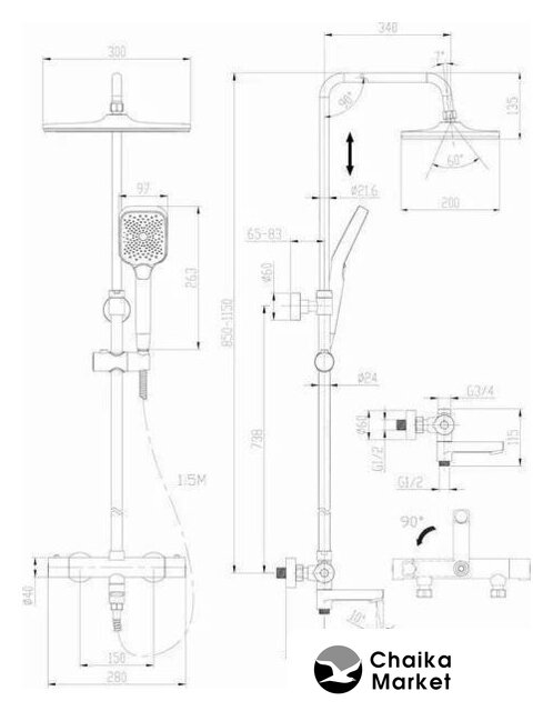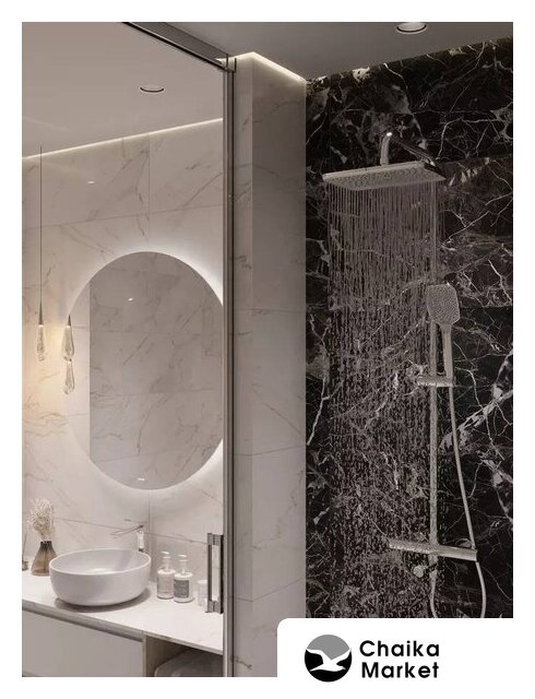 | Комплектация | верхний душ, штанга, ручной душ (лейка), держатель лейки, шланг, смеситель, излив для ванны |