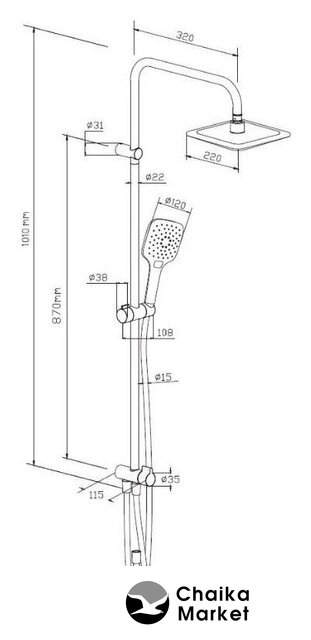 | Диаметр (ширина) верхнего душа | 220 мм |