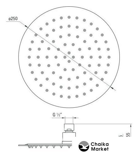 | Диаметр (ширина) верхнего душа | 250 мм |