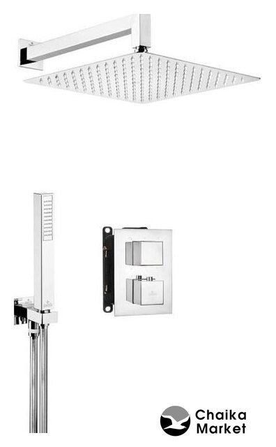 душевая система (с верхним душем), скрытый монтаж, термостатический смеситель, верхний душ 300 мм, ручной душ