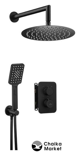 душевая система (с верхним душем), настенный монтаж, термостатический смеситель, верхний душ 300 мм, ручной душ