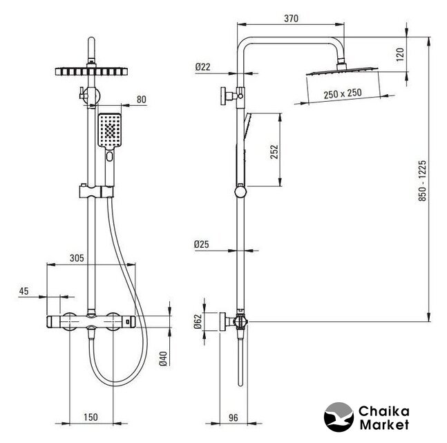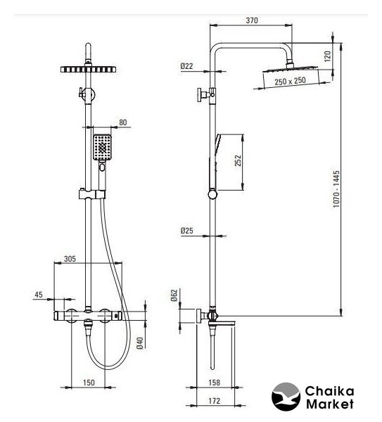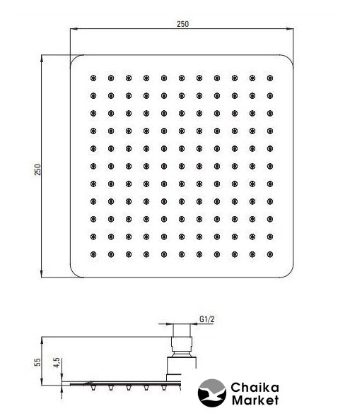 Диаметр (ширина) верхнего душа | 250 мм |