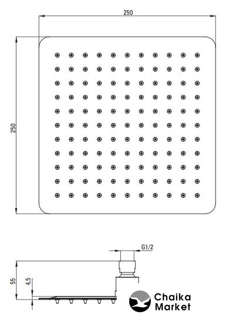 душевая система (с верхним душем), настенный монтаж, механический смеситель, верхний душ 250 мм