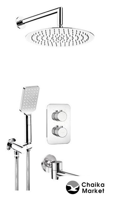 | Комплектация | верхний душ, ручной душ (лейка), держатель лейки, шланг, смеситель, излив для ванны |