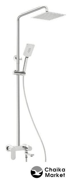 Комплектация | верхний душ, штанга, ручной душ (лейка), держатель лейки, шланг, смеситель, излив для ванны |