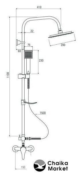 | Диаметр (ширина) верхнего душа | 200 мм |