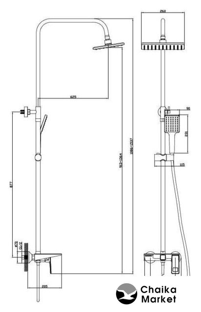| Комплектация | верхний душ, штанга, ручной душ (лейка), держатель лейки, шланг, смеситель, излив для ванны |