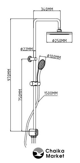 Комплектация | верхний душ, штанга, ручной душ (лейка), держатель лейки, шланг, смеситель |
