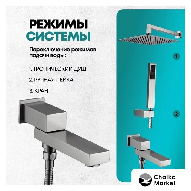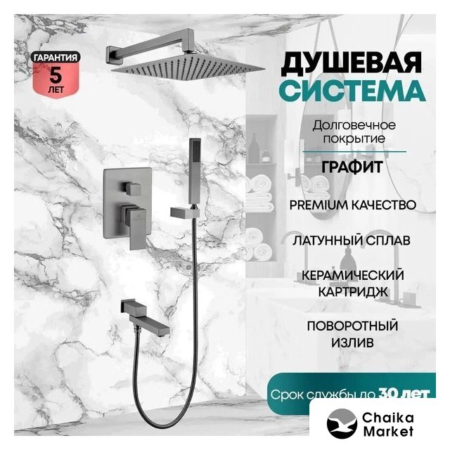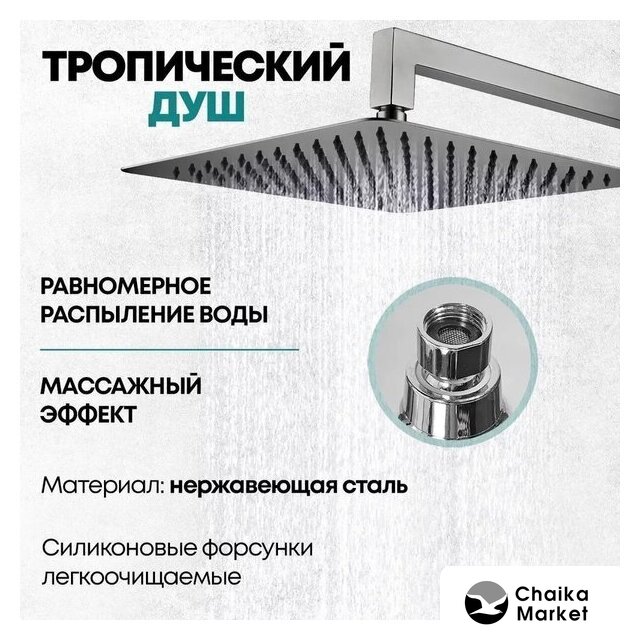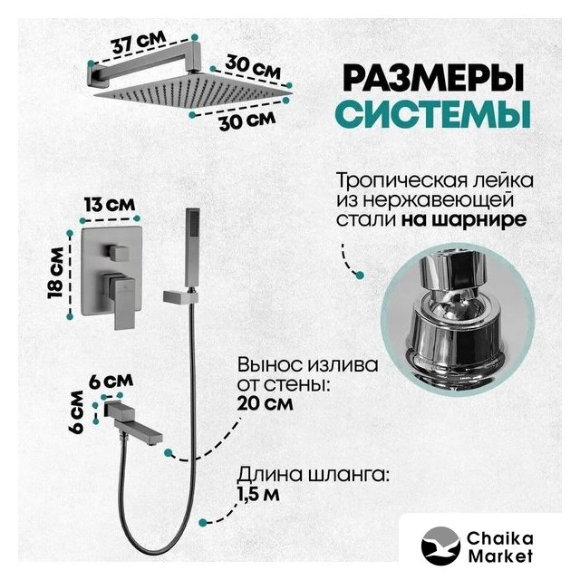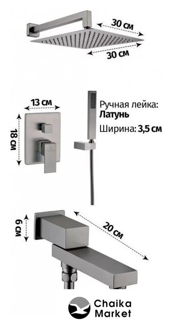 душевая система (с верхним душем), скрытый монтаж, отсутствует смеситель, верхний душ 300 мм, ручной душ 35 мм