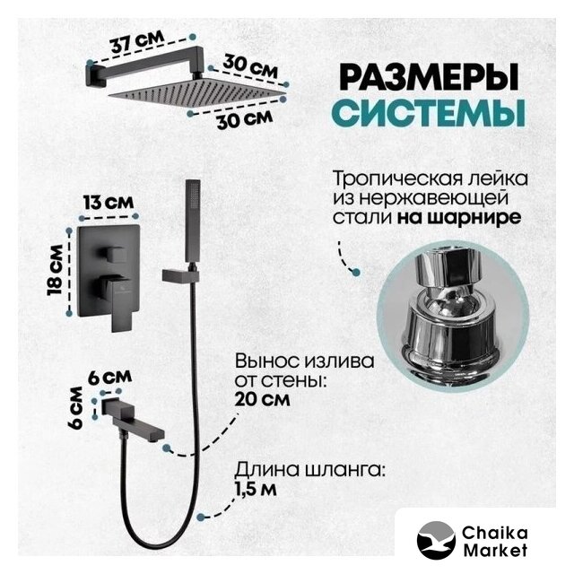 душевая система (с верхним душем), настенный монтаж, механический смеситель, верхний душ 300 мм, ручной душ 24 мм