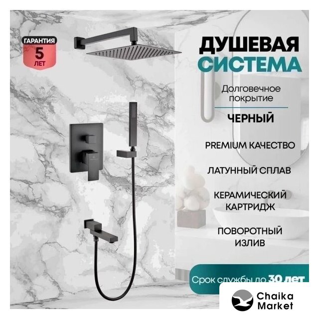 душевая система (с верхним душем), скрытый монтаж, механический смеситель, верхний душ 250 мм, ручной душ 24 мм