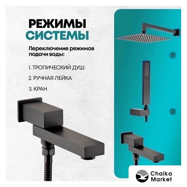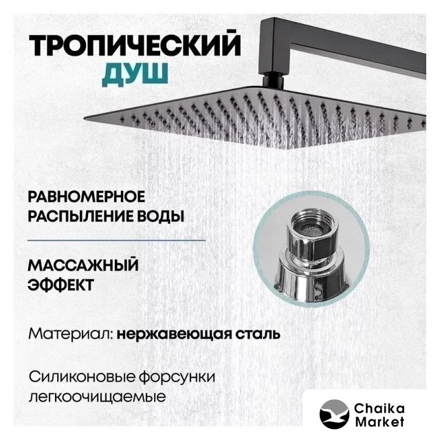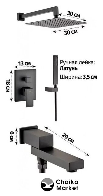 Комплектация | верхний душ, ручной душ (лейка), шланг |