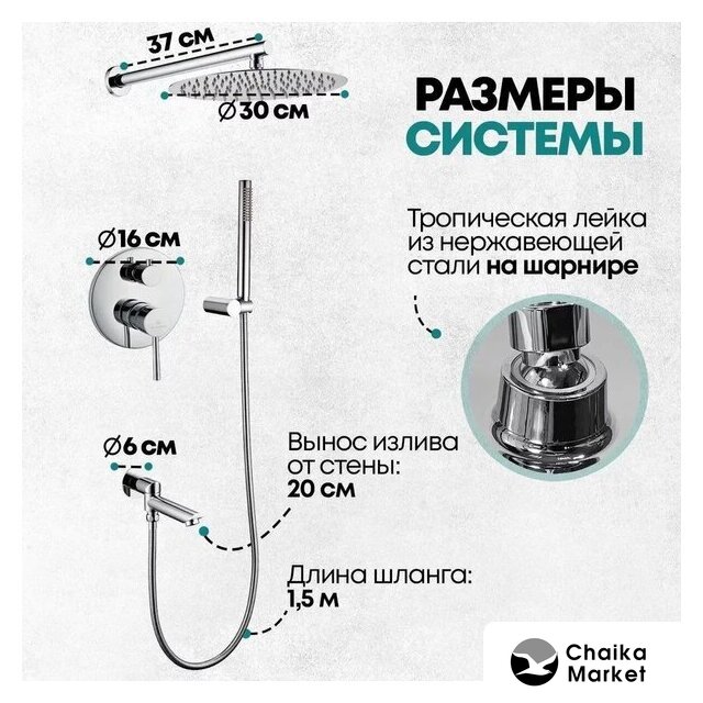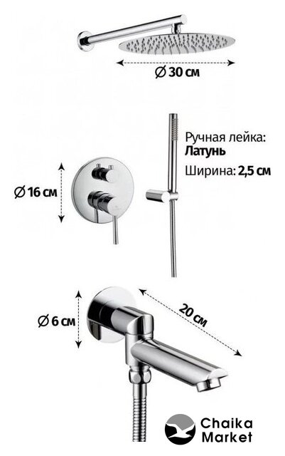 Диаметр (ширина) верхнего душа | 300 мм |