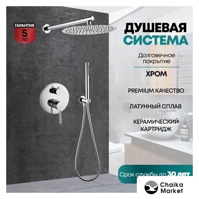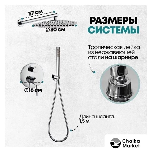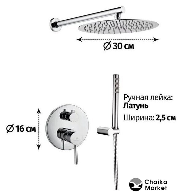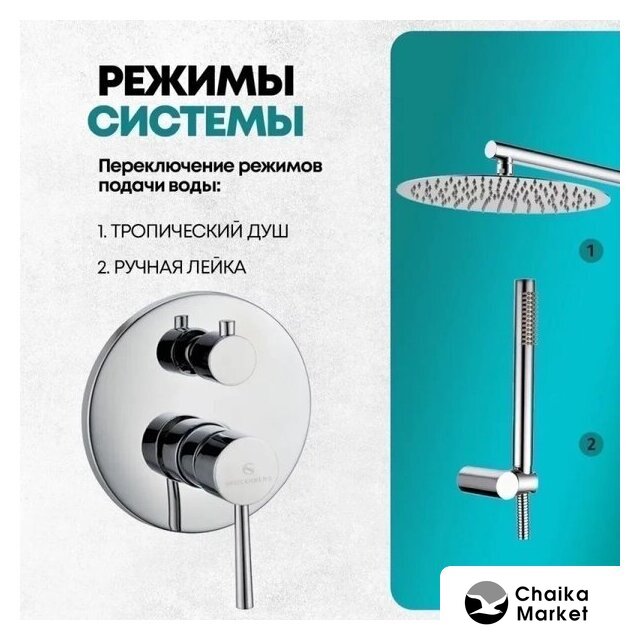 душевая система (с верхним душем), настенный монтаж, механический смеситель, верхний душ, ручной душ