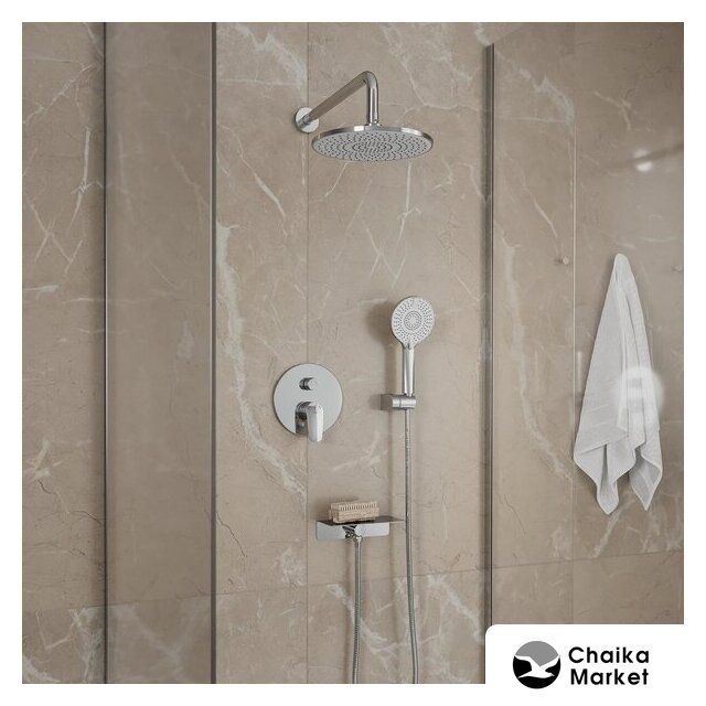 душевая система (с верхним душем), скрытый монтаж, механический смеситель, верхний душ 200 мм, ручной душ
