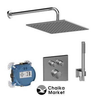 душевая система (с верхним душем), скрытый монтаж, термостатический смеситель, верхний душ 250 мм, ручной душ