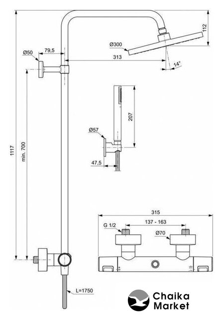 | Тип | душевая система (с верхним душем) |