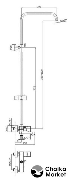 душевая система (с верхним душем), настенный монтаж, верхний душ 22 мм