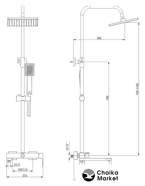 душевая система (с верхним душем), настенный монтаж, механический смеситель, верхний душ, ручной душ