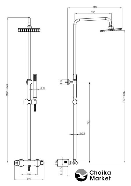 Комплектация | верхний душ, штанга, ручной душ (лейка), держатель лейки, шланг, смеситель |